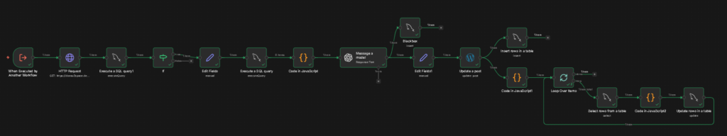 Das wäre dann eben der n8n Workflow, welcher die internen Links in den Artikeln verbaut. In der Datenbank werden gesetzte Links / wie oft verwendet gespeichert und ein kleines Scoring tritt in Kraft. Nicht das in jedem Artikel die selben Links gesetzt werden. Aktuell sind glaub ich rund 15 interne Links in der Datenbank gespeichert, so das die KI auch eine Auswahl hat was verlinkt werden kann.