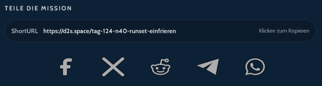 Ne kurze Domain mit .de Endungen, findest keine gute mehr. Also überlegt, was gibts denn so alles an neuen Endungen. Da kam mir .space ins Auge und d2s war hier auch noch frei. Und schwup di wups wird aus der langen URL von oben das hier: https://d2s.space/tag-124-n40-runset-einfrieren